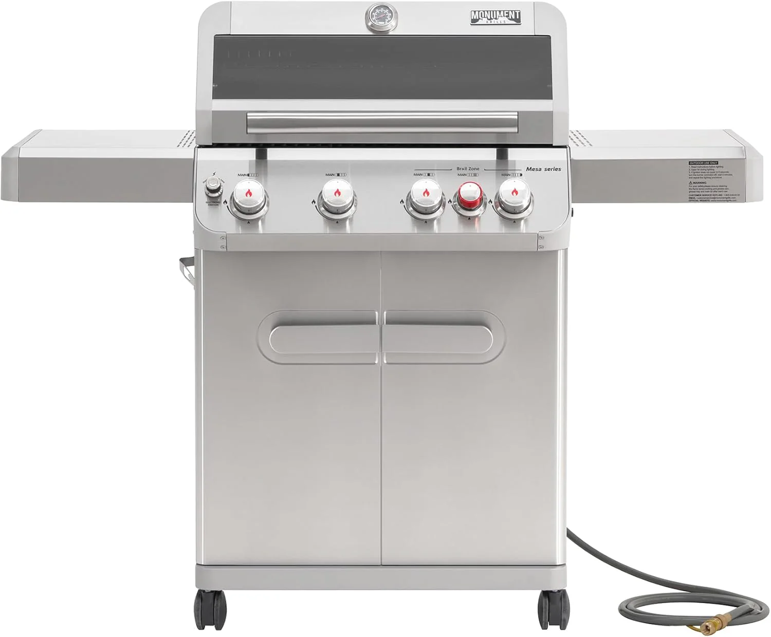 Monument Grills 4+1 Burner Natural Gas Grill with Natural Gas Hose, 50,000 BTU Stainless