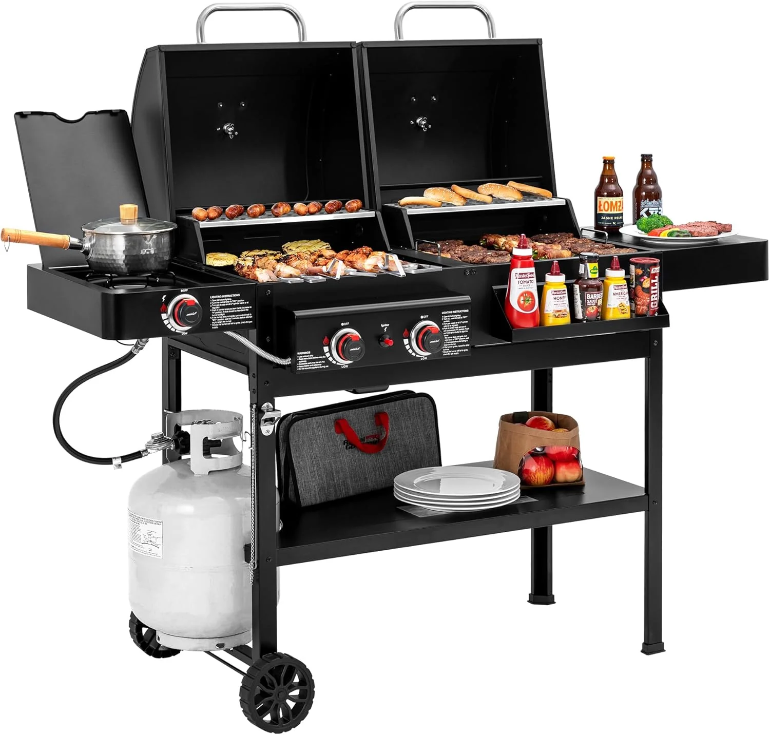 Captiva Designs Propane Gas Grill and Charcoal Grill Combo with Side Burner