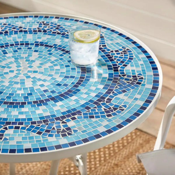 StyleWell 28 in. Coastal Glass Mosaic Outdoor Patio Bistro Table