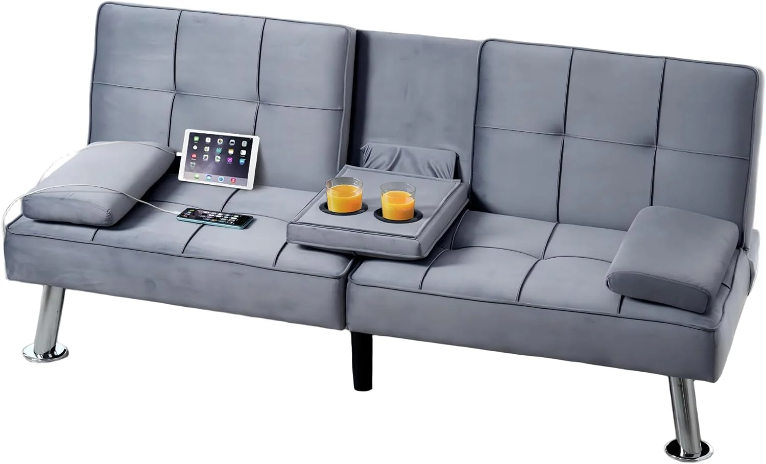 FLEXISPOT XCT3 Futon Sofa Bed with USB Charging Port Convertible Sleeper Couch